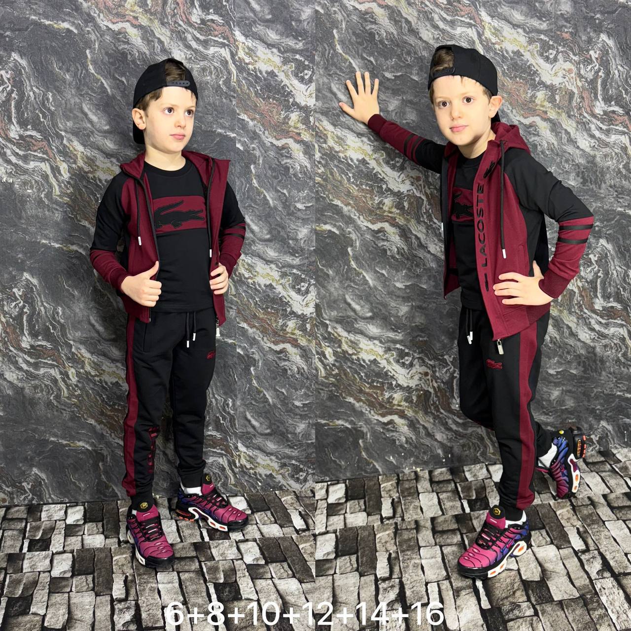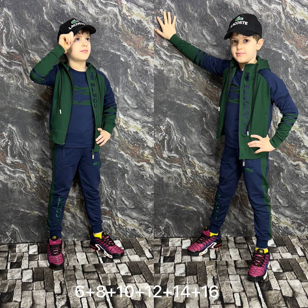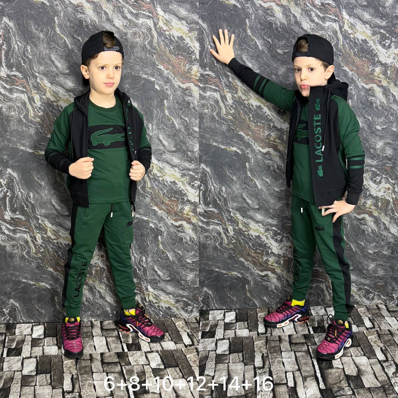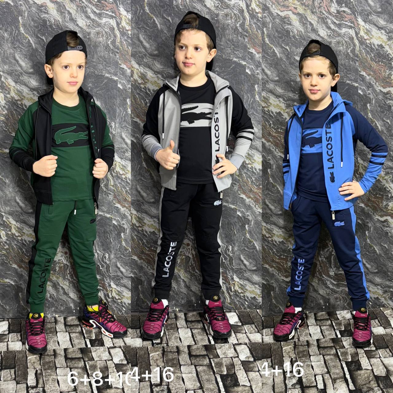 🎨 الرسومات مطرزة بدقّة عالية، ما تروحش فـ الغسيلشعار LACOSTE مطرز على التيشيرت، الڨيست، و حتى فـ السروالخياطة احترافية و fermeture قوية